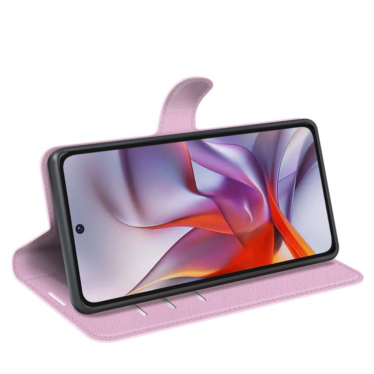 Funda de Cuero con Tapa Horizontal y Textura de Lichi para Motorola Moto G 5G (2025) con Soporte (Rosa)