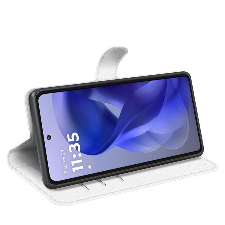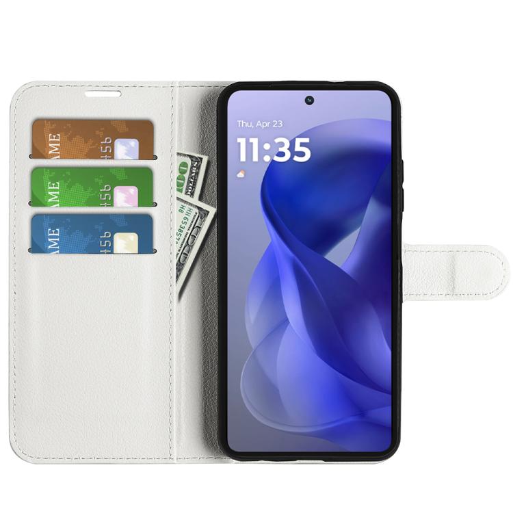 Funda de Cuero con Tapa Horizontal y Textura de Lichi para Motorola Moto G Power 2025 con Soporte (Blanco)