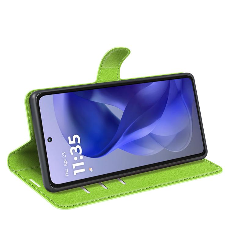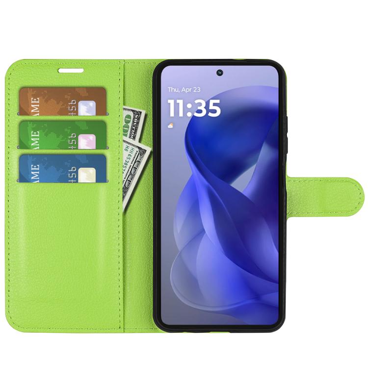 Funda de Cuero con Tapa Horizontal y Textura de Lichi para Motorola Moto G Power 2025 con Soporte (Verde)