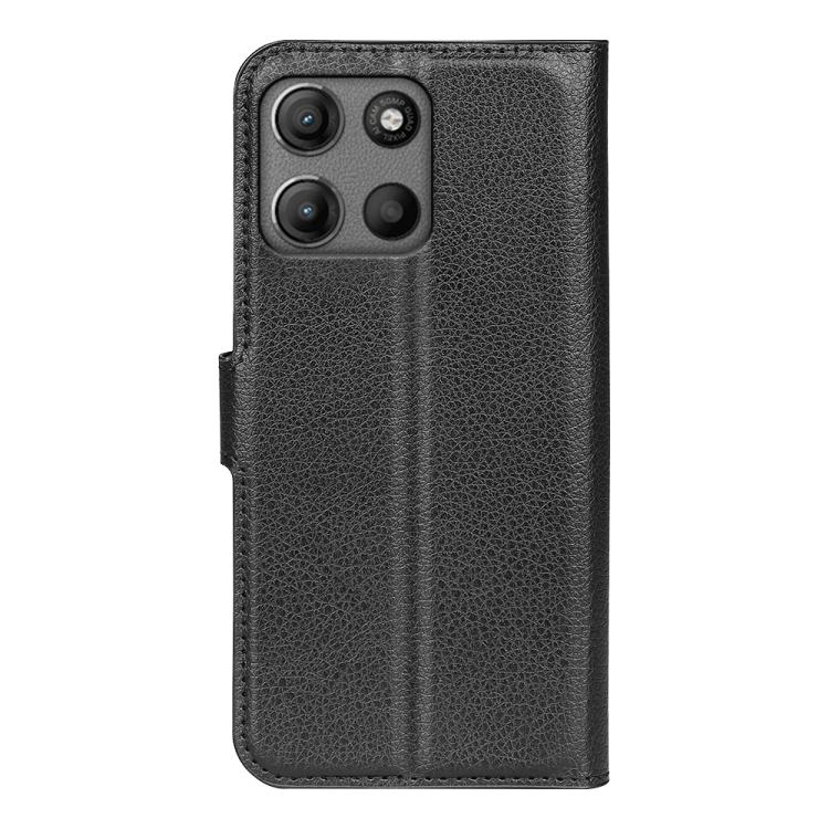 Funda de Cuero con Tapa Horizontal y Textura de Lichi para Motorola Moto G15 con Soporte (Negro)
