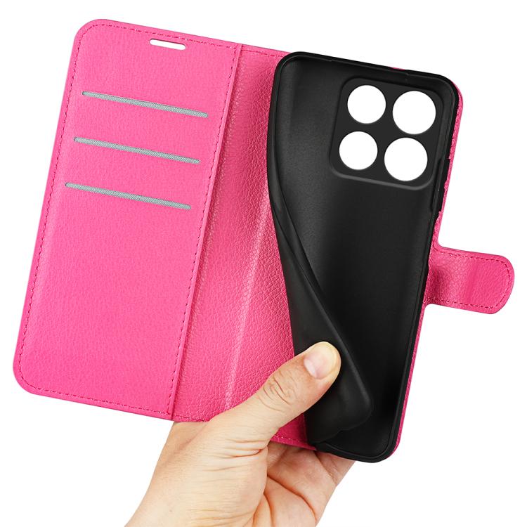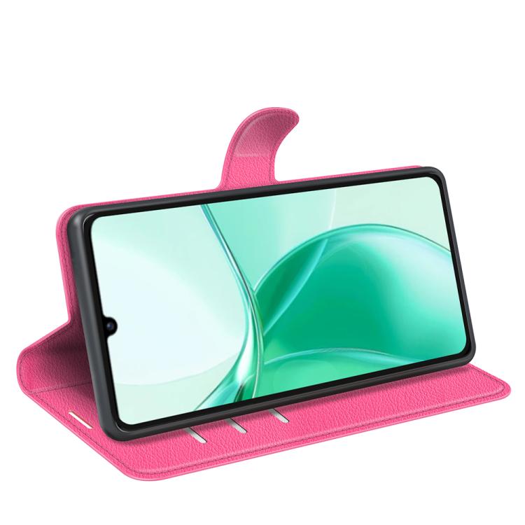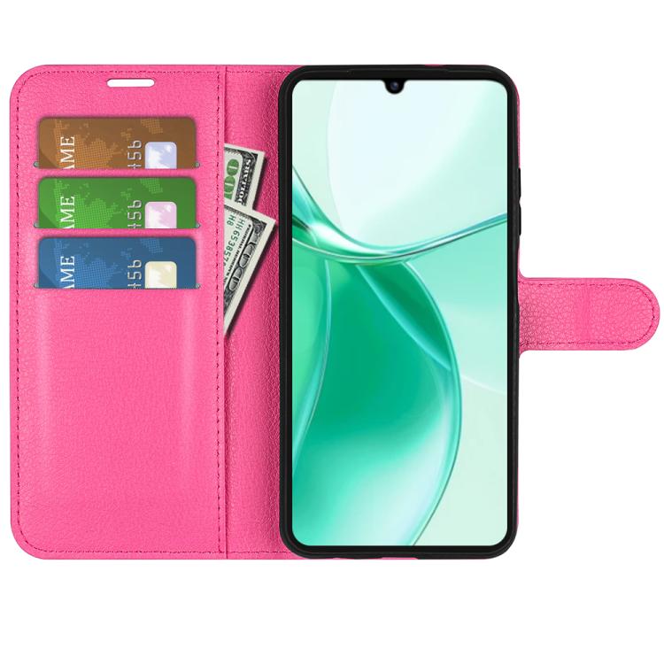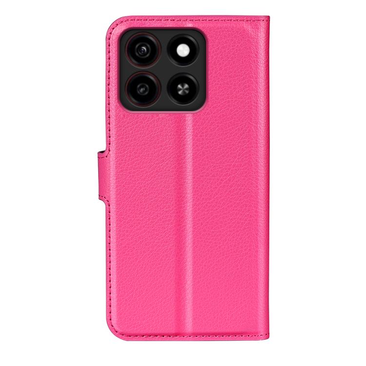 Funda de Cuero para ZTE Blade A35 con Tapa Horizontal, Textura de Lichi y Soporte (Rosa y Rojo)