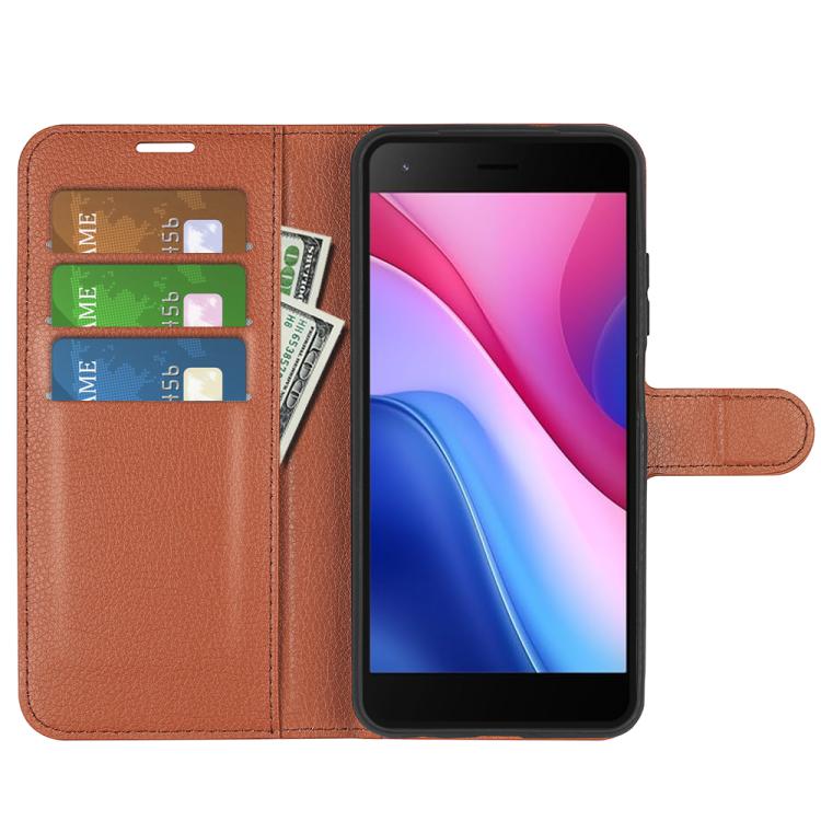 Funda de Cuero para ZTE Blade A35 Lite con Tapa Horizontal y Soporte (Marrón)