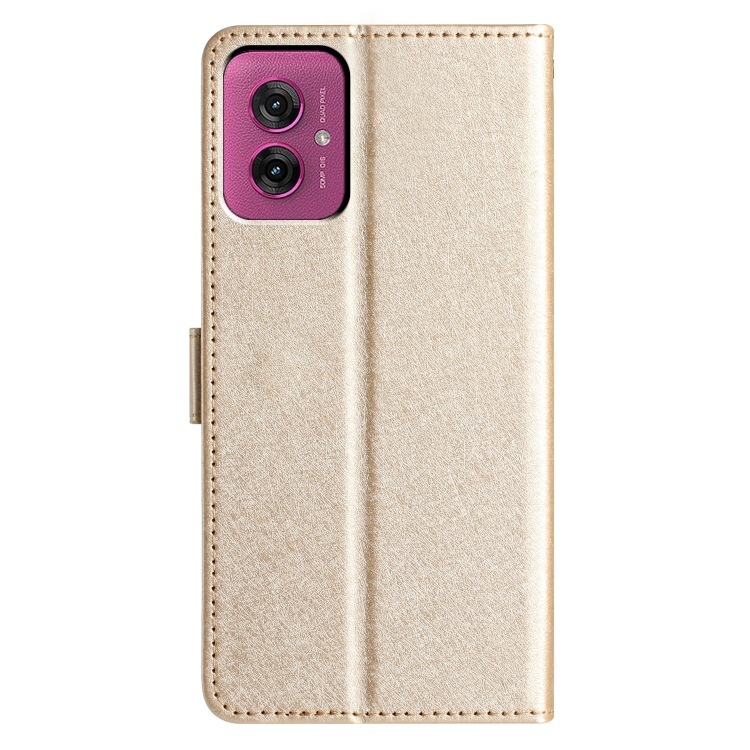 Funda de Cuero con Tapa Horizontal y Textura de Seda para Motorola Moto G55 (Dorada)