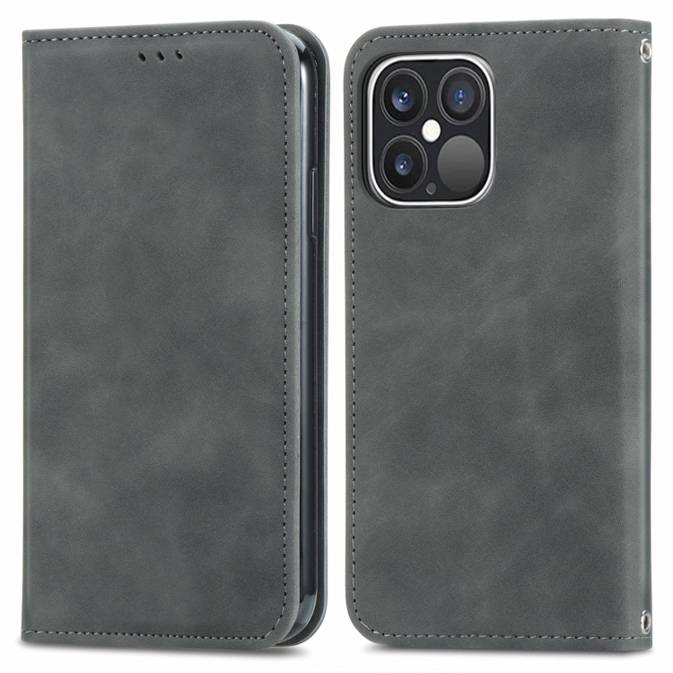Funda de Cuero con Tapa Magnética para iPhone 15 Pro Max Retro Skin Feel (Gris)
