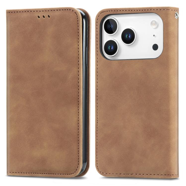 Funda de cuero con tapa magnética y diseño retro para iPhone 17 Pro Max (marrón)
