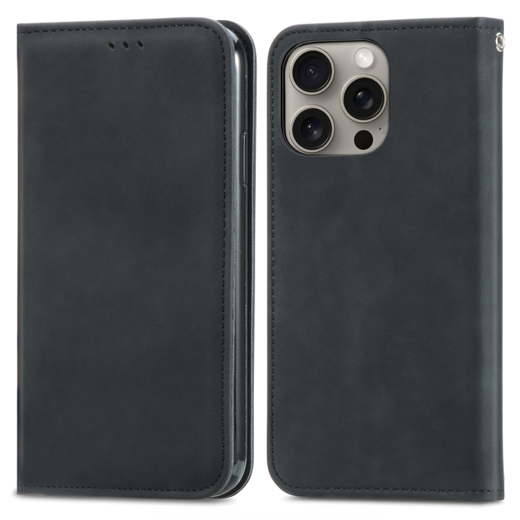 Funda de Cuero con Tapa Magnética y Tacto Retro para iPhone 16 Pro (Negra)