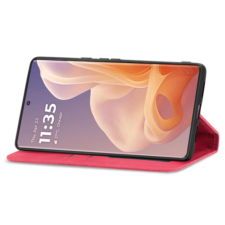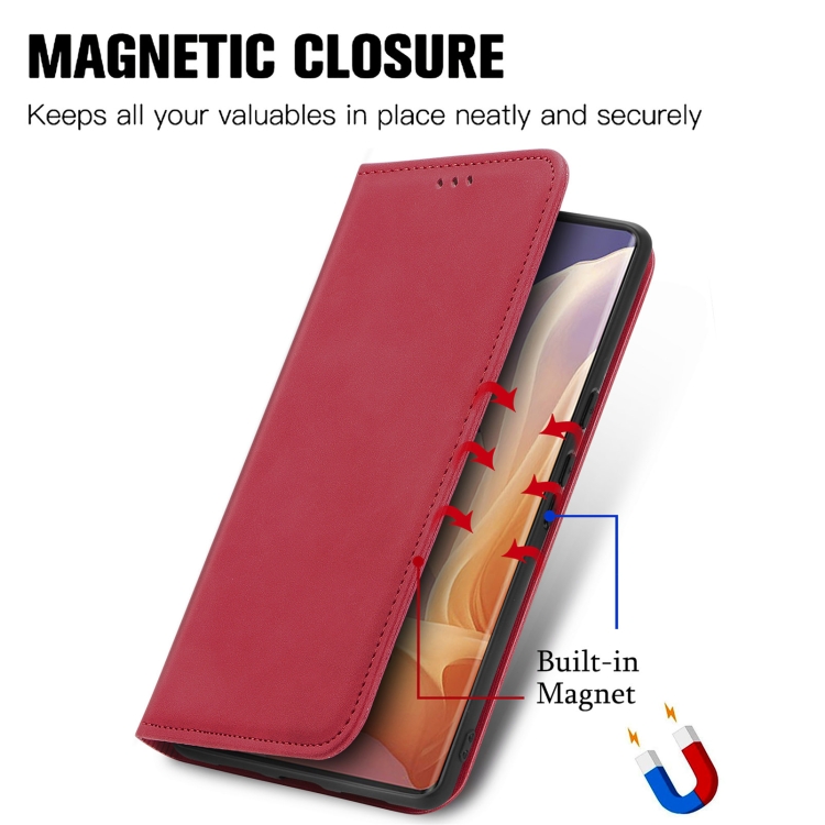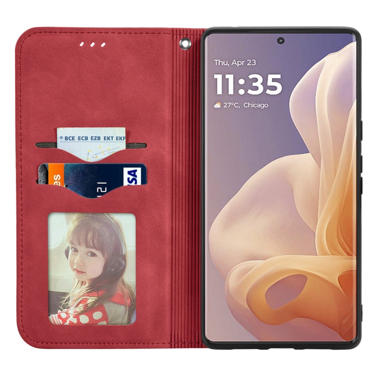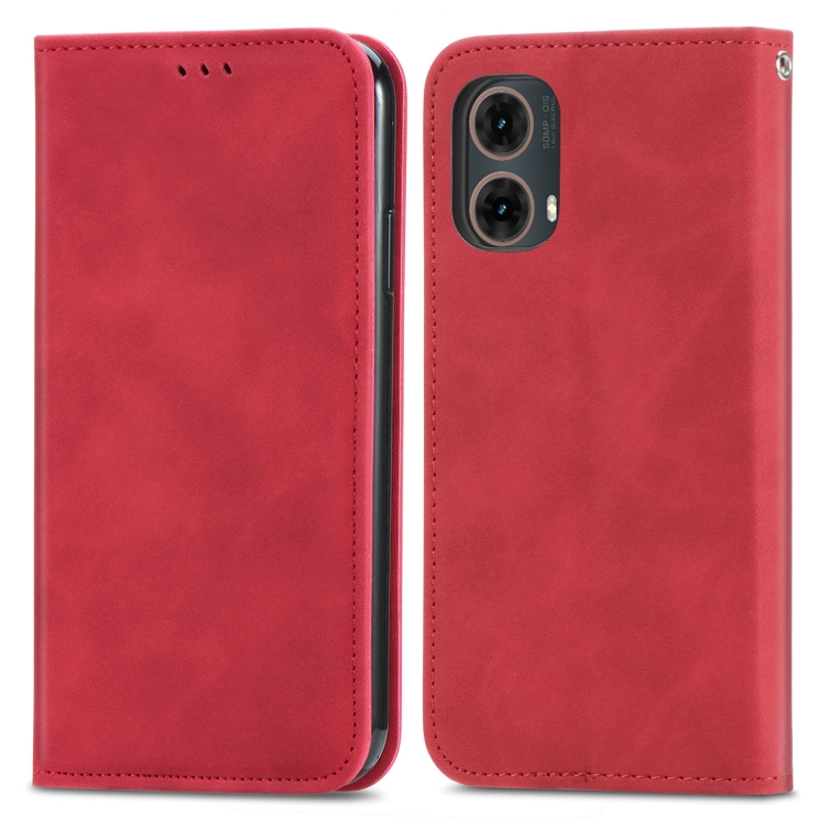 Funda de Cuero con Tapa Magnética y Tacto Retro para Motorola Moto G45 (Rojo)