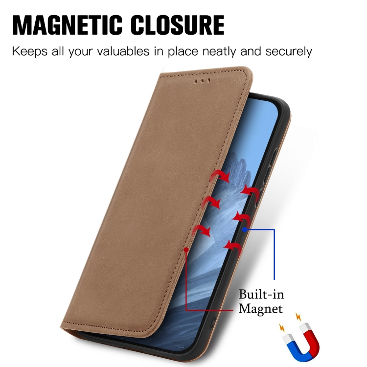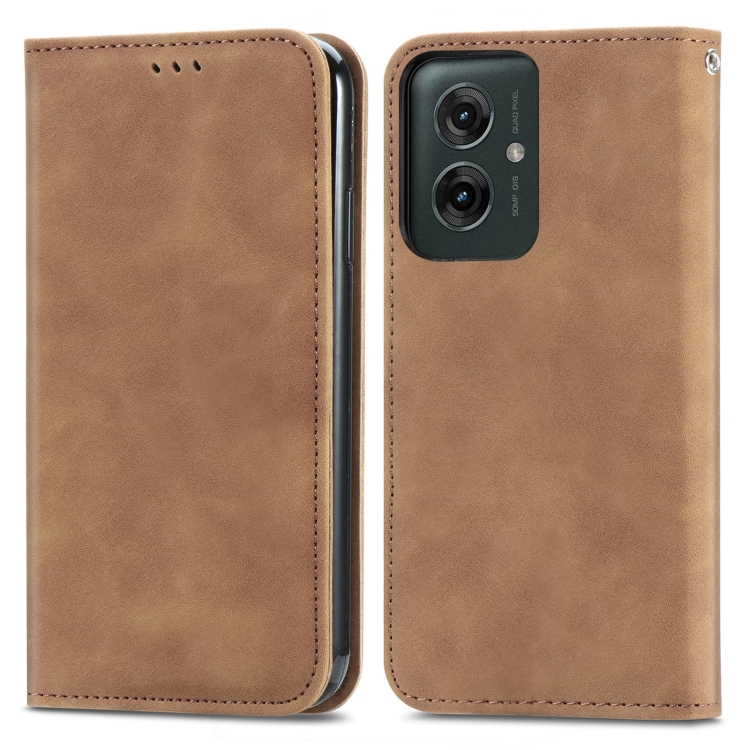Funda de Cuero con Tapa Magnética para Motorola Moto G55 (Marrón)