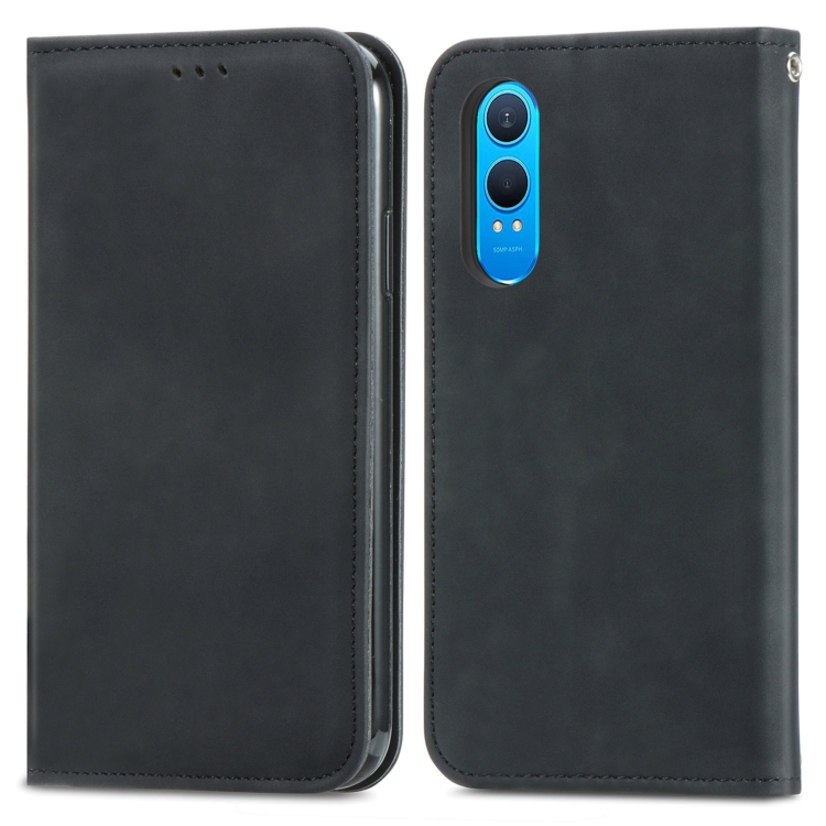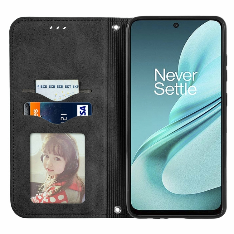 Funda de Cuero con Tapa Magnética y Tacto Retro para OnePlus Ce 4 Lite (Negra)