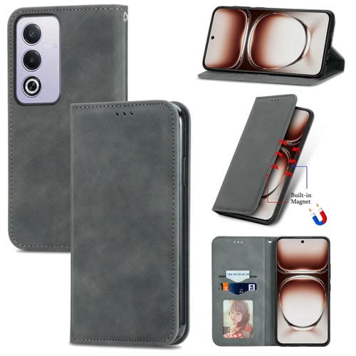Funda de Cuero con Tapa Magnética y Tacto Retro para Oppo A3 Pro (Gris)