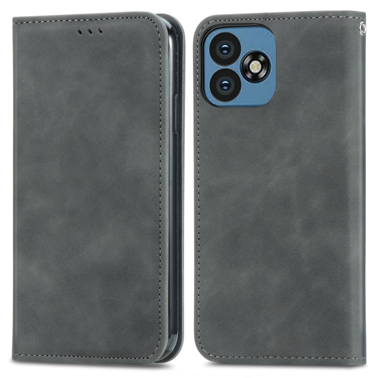 Funda de Cuero con Tapa Magnética y Tacto Retro para Oukitel C53 (Gris)