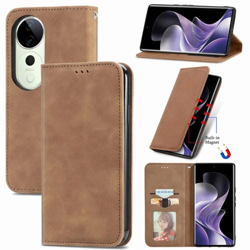 Funda de Cuero con Tapa Magnética y Tacto Retro para Vivo T3 Ultra (Marrón)