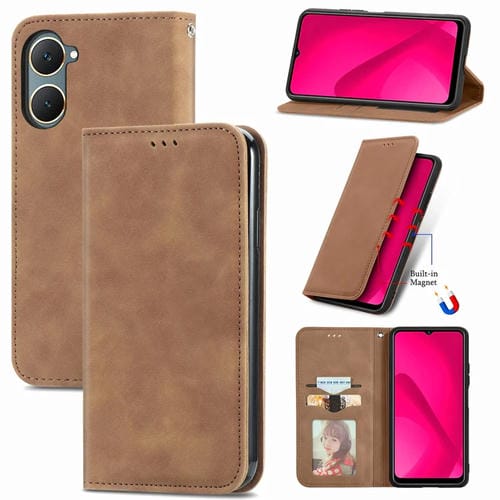 Funda de Cuero con Tapa Magnética y Tacto Retro para Vivo Y18E (Marrón)