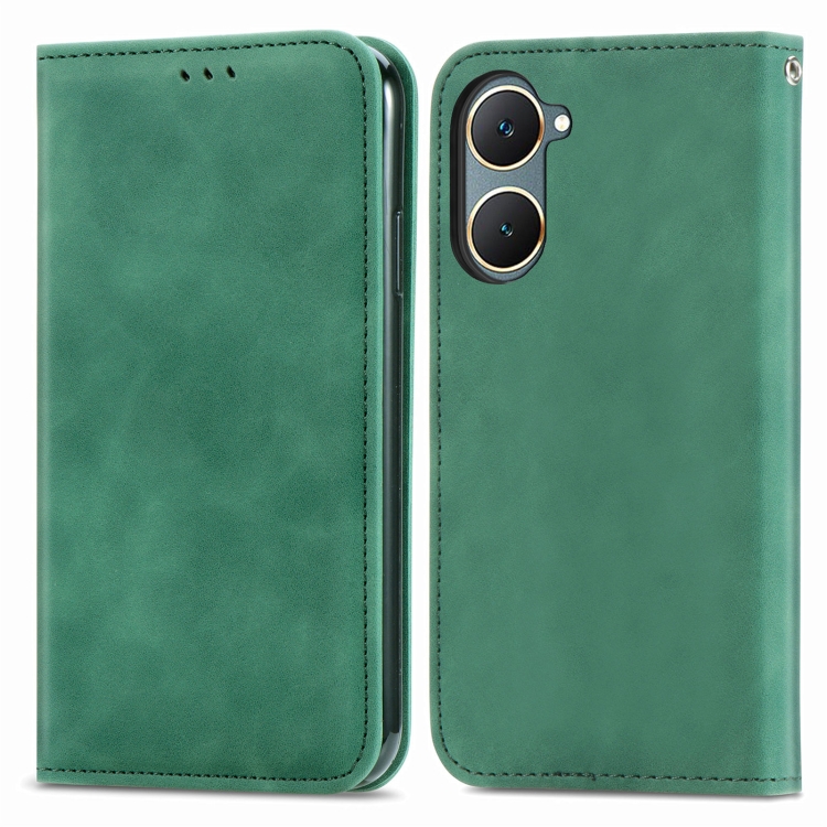 Funda de Cuero con Tapa Magnética y Tacto Retro para Vivo Y18E (Verde)