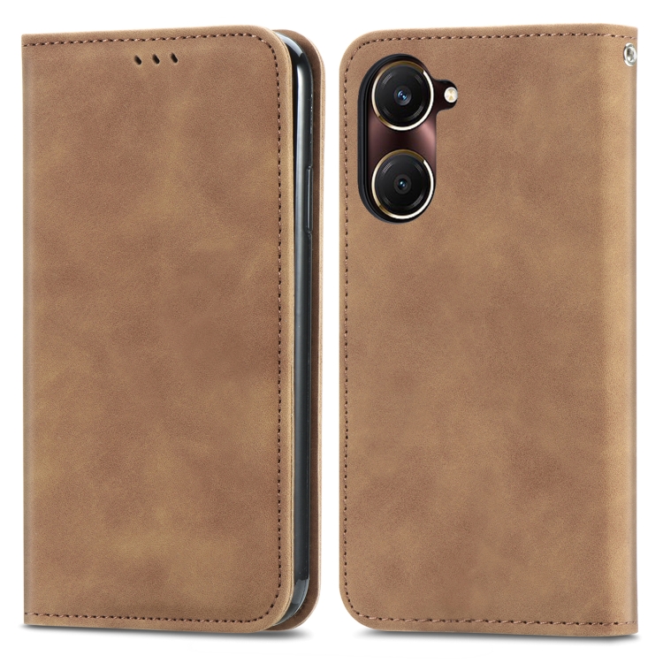 Funda de Cuero con Tapa Magnética y Tacto Retro para Vivo Y37 (Marrón)