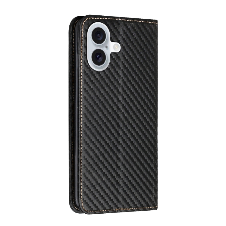 Funda de Cuero con Tapa Magnética y Textura de Fibra de Carbono para iPhone 16 Plus (Negro)
