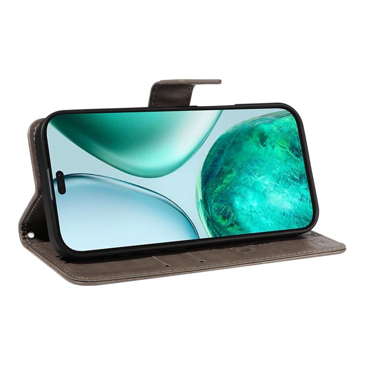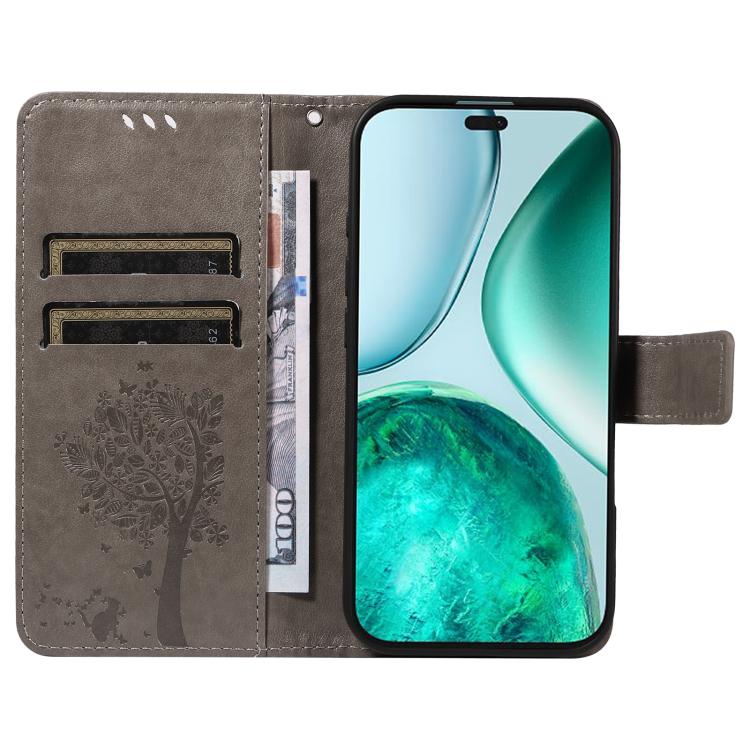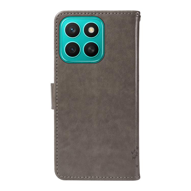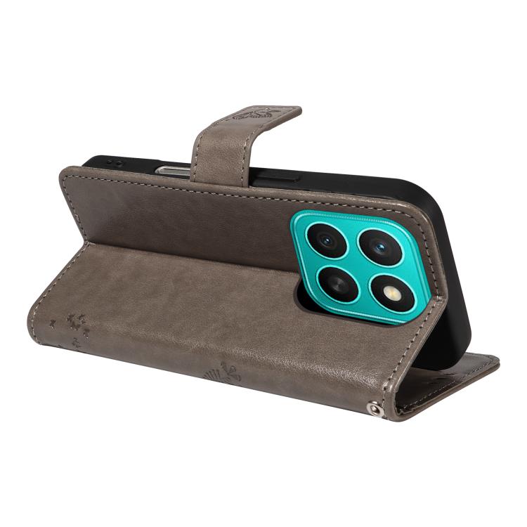 Funda de Cuero con Tapa para Honor X8C 4G Global con Estampado de Árbol y Gato (Gris)