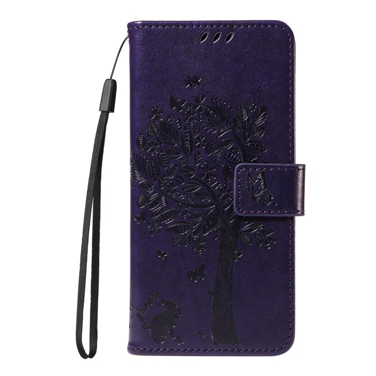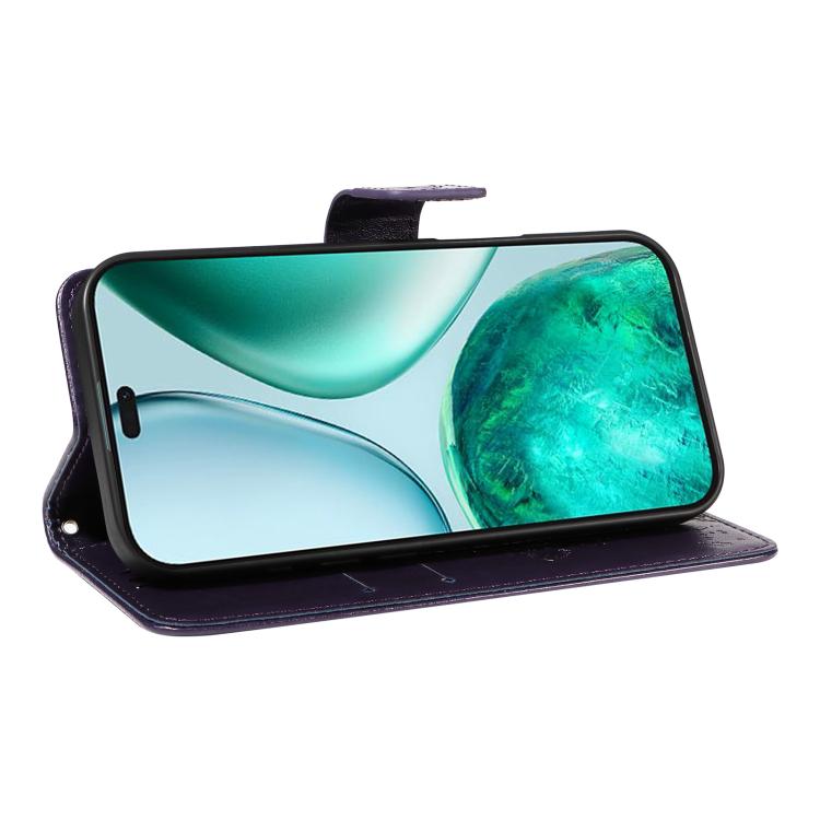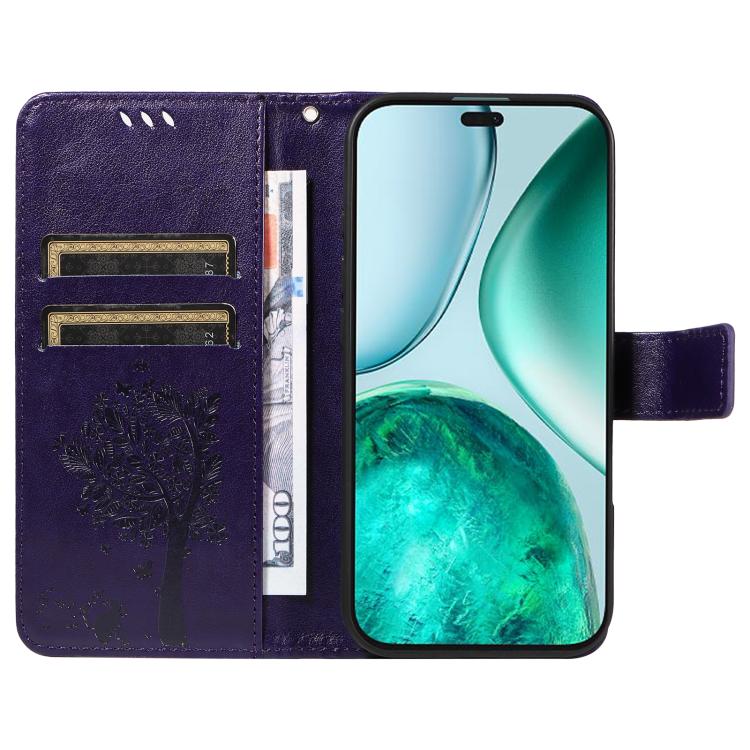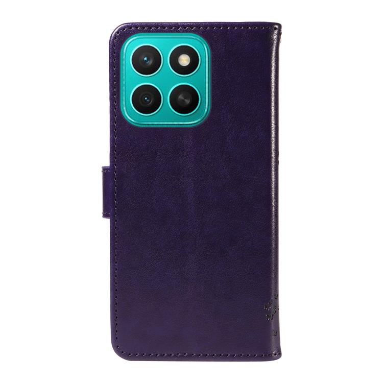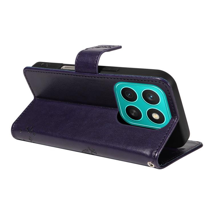 Funda de Cuero con Tapa para Honor X8C 4G Global con Estampado Árbol y Gato (Morado)
