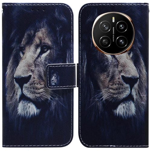 Funda de Cuero con Tapa para Honor Magic7 con Dibujo Colorido (León)