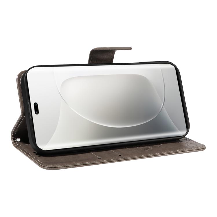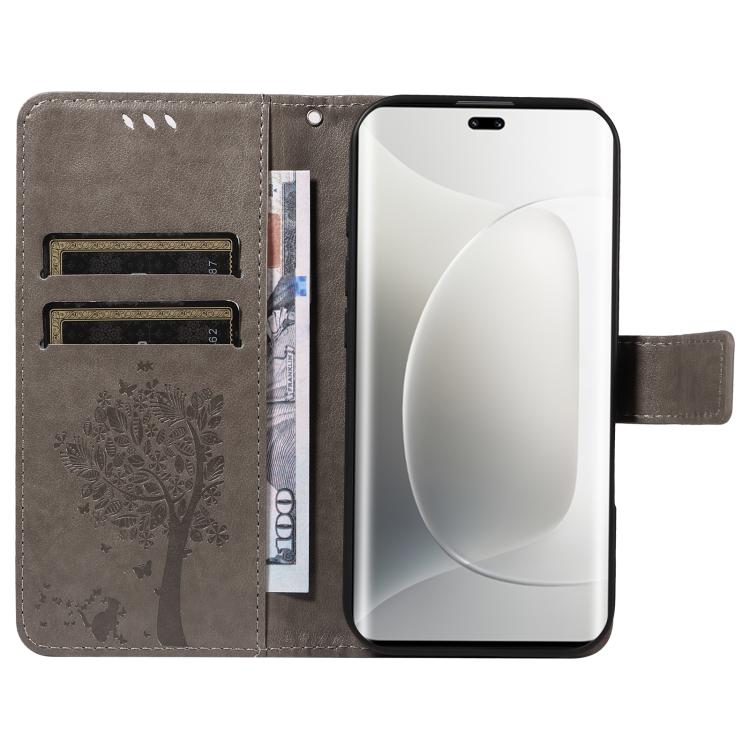 Funda de Cuero con Tapa para Honor 300 Pro/300 Ultra con Diseño Árbol y Gato (Gris)