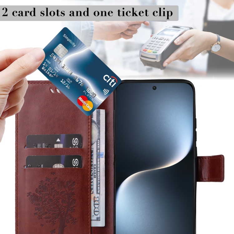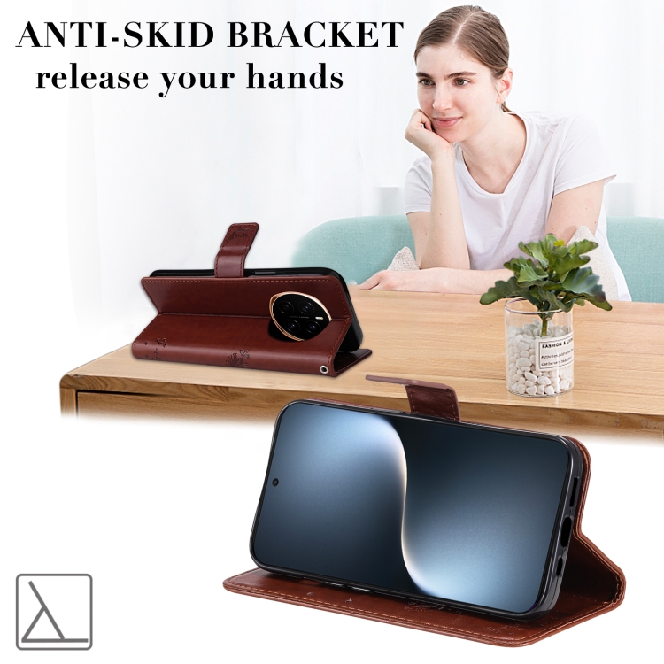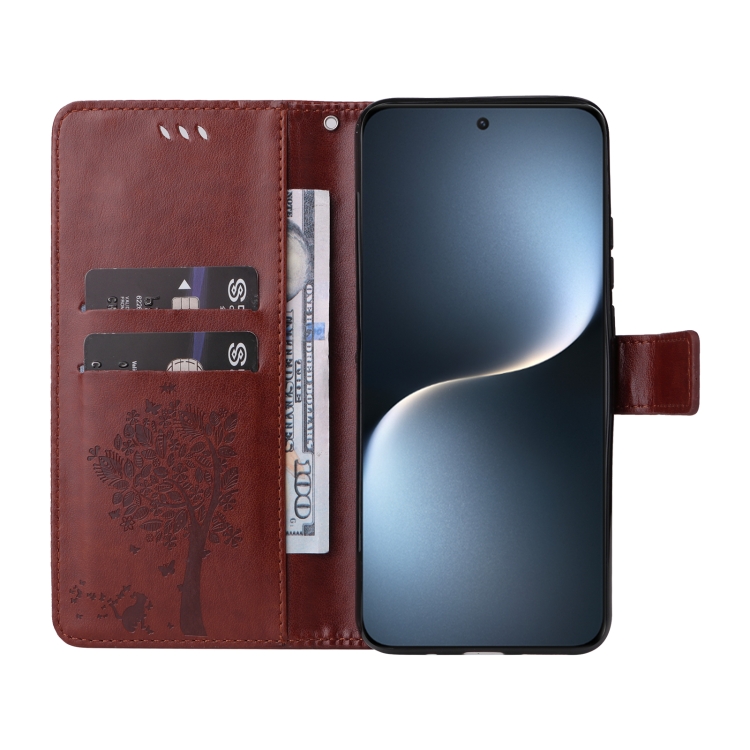 Funda de Cuero con Tapa para Honor Magic7 Diseño Árbol y Gato En Relieve (Café)