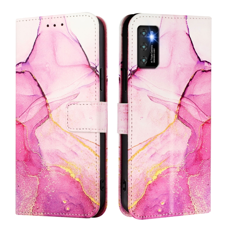 Funda de Cuero con Tapa para Cubot P50 Pt003 Diseño Mármol (Rosa, Morado y Dorado)