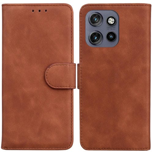 Funda de Cuero con Tapa para Motorola Edge 50 Neo 5G con Tacto de Piel (Marrón)