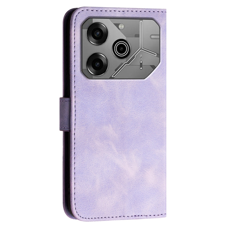 Funda de Cuero con Tapa para Teléfono Tecno Pova 6 5G y 6 Pro 5G Yx0080 con Diseño Relieve Mariposa y Cordón (Morado Claro)