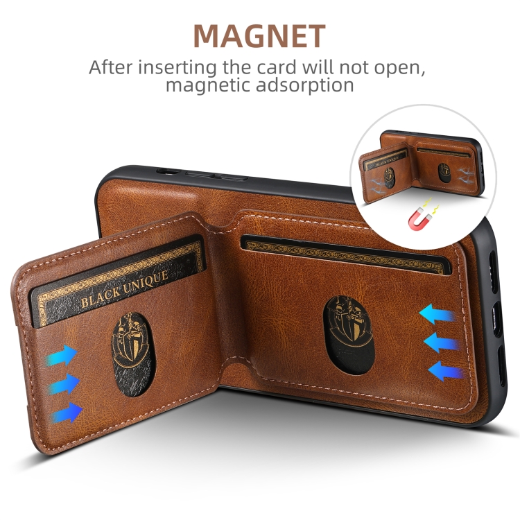Funda de Cuero Suteni H02 para iPhone 16 Tipo Billetera con Tapa y Soporte (Marrón)