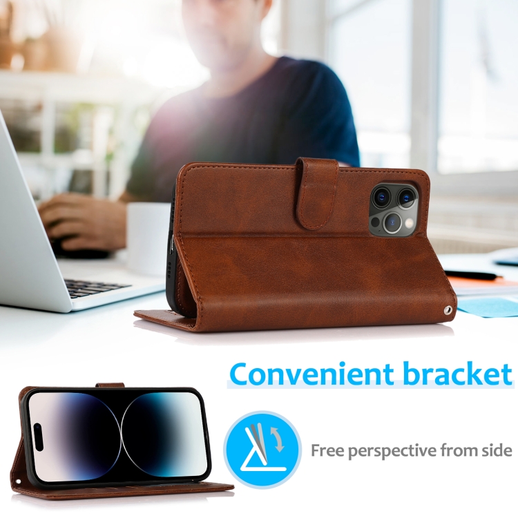 Funda de Cuero iPhone 16 Pro Max Tapa Trasera Magnética Desmontable 2 En 1 (Marrón)