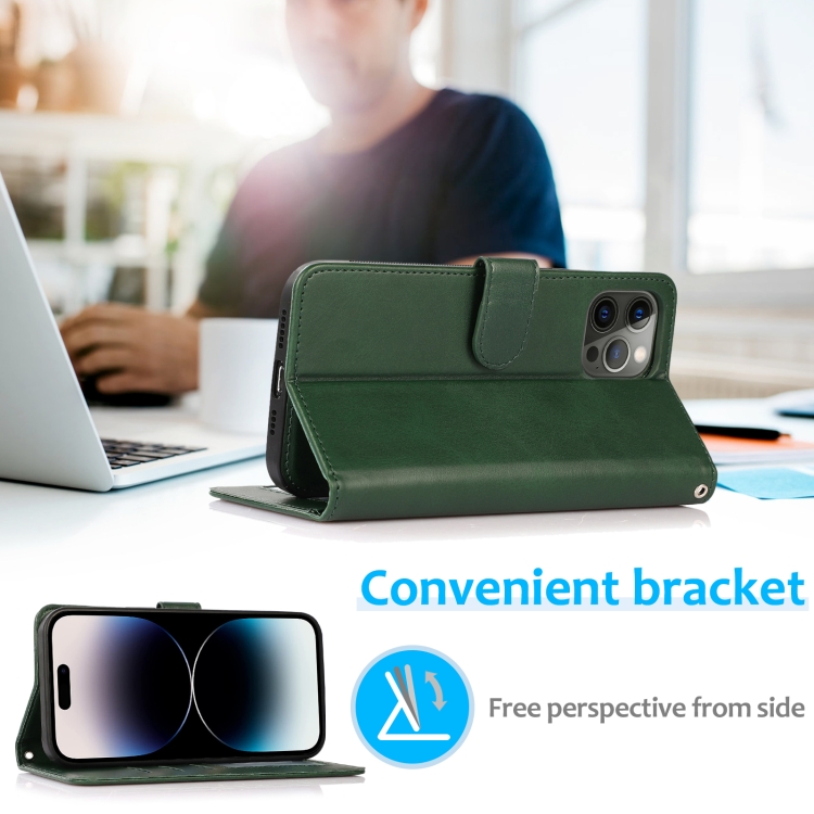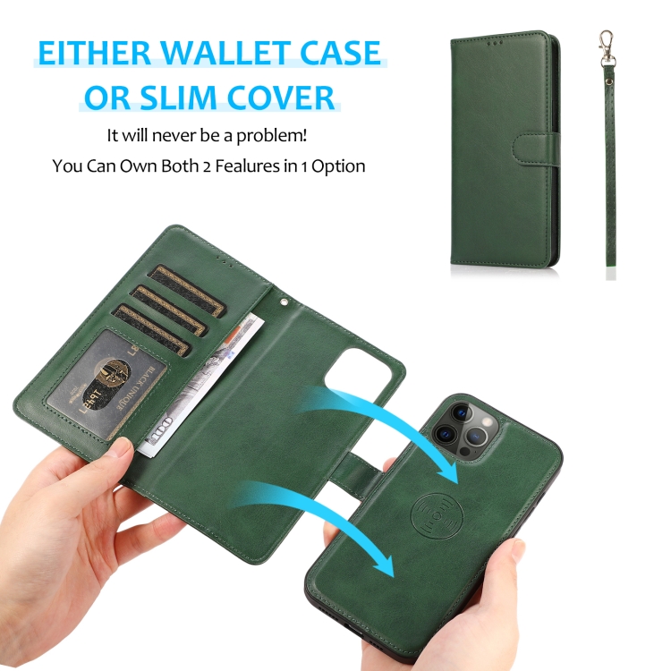 Funda de Cuero iPhone 16 Pro Max Tapa Trasera Magnética Desmontable 2 En 1 (Verde)