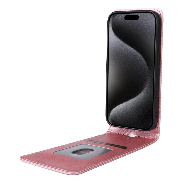 Funda de Cuero para iPhone 15 Pro Tapa Vertical Magnética (Oro Rosa)