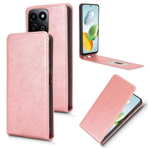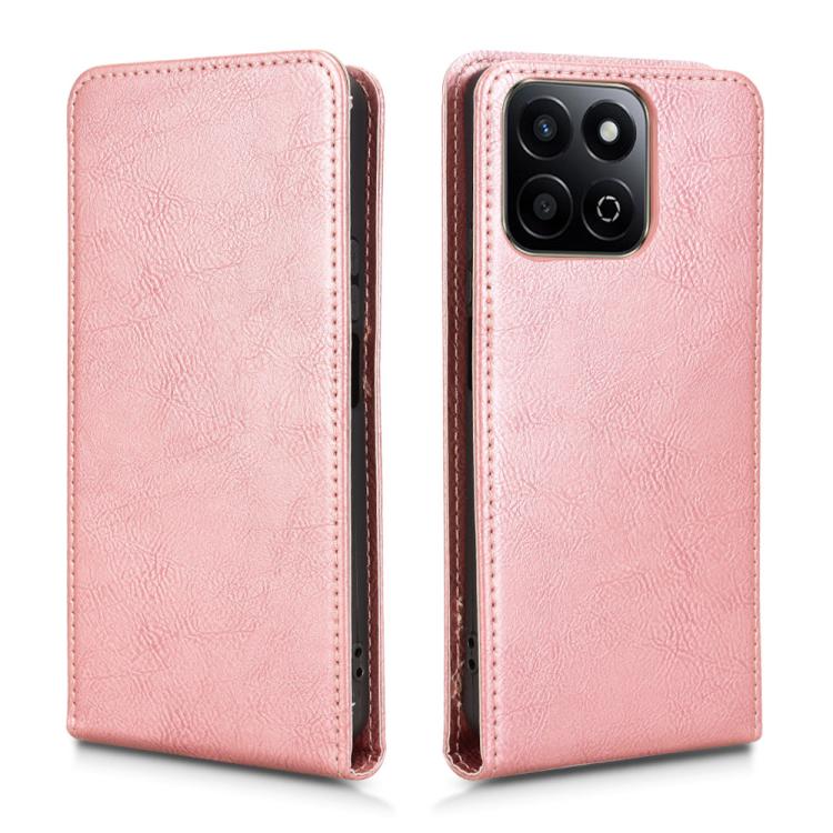 Funda de Cuero con Tapa Vertical Magnética para Honor 200 Smart 5G y Play 60 Plus 5G (Oro Rosa)