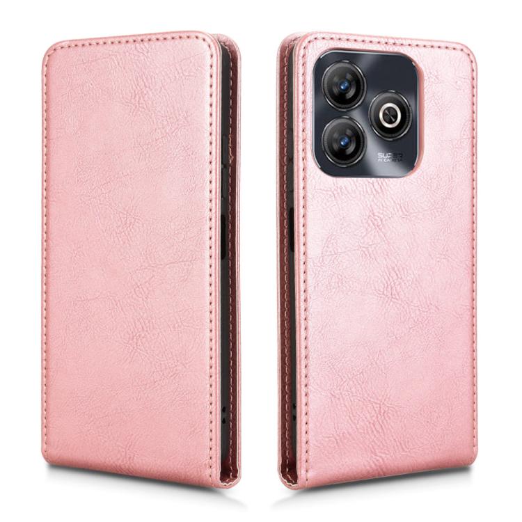Funda de Cuero con Tapa Vertical Magnética para ZTE Blade A75 4G (Oro Rosa)