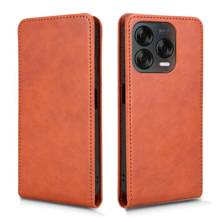 Funda de Cuero con Tapa Vertical Magnética para ZTE Blade V70 Design 4G (Marrón)