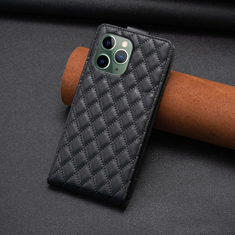 Funda de Cuero con Tapa Vertical para iPhone 11 Pro Diamond Lattice (Negro)