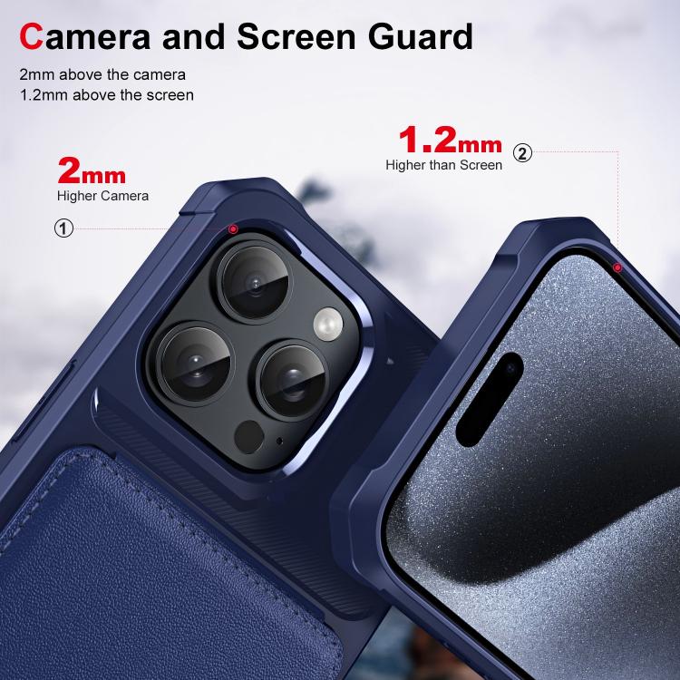 Funda de Cuero con Tapa Vertical para iPhone 16 Pro TaRJetero (Azul Oscuro)