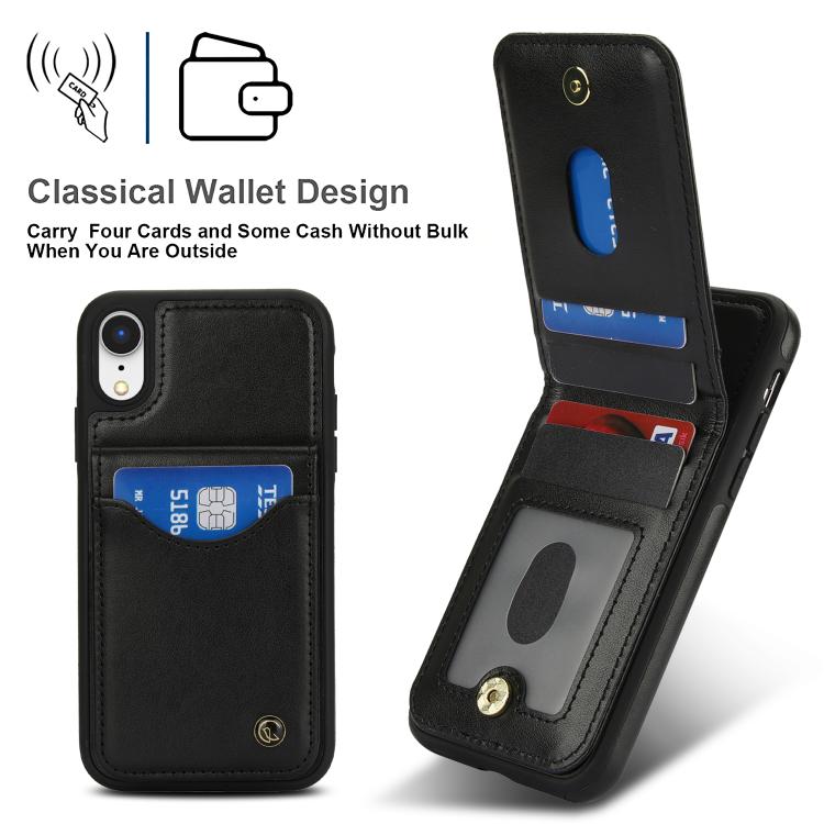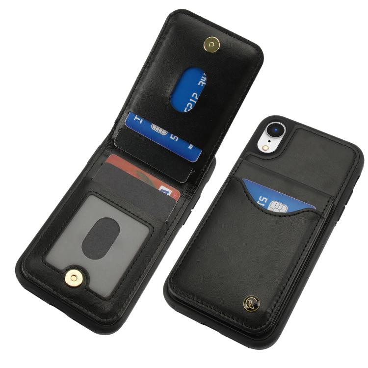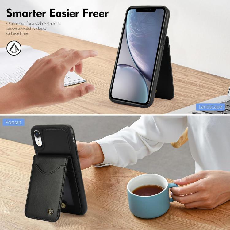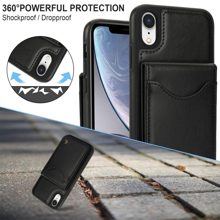Funda de Cuero con Tapa Vertical Awquer para iPhone Xr con Tarjetero (Negro)