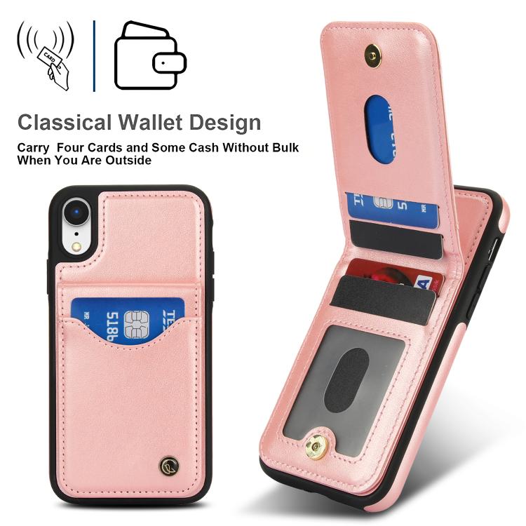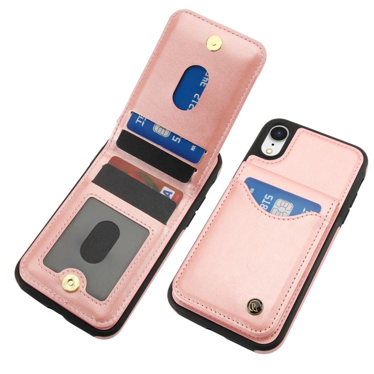Funda de Cuero con Tapa Vertical Awquer para iPhone Xs Max con Tarjetero (Oro Rosa)
