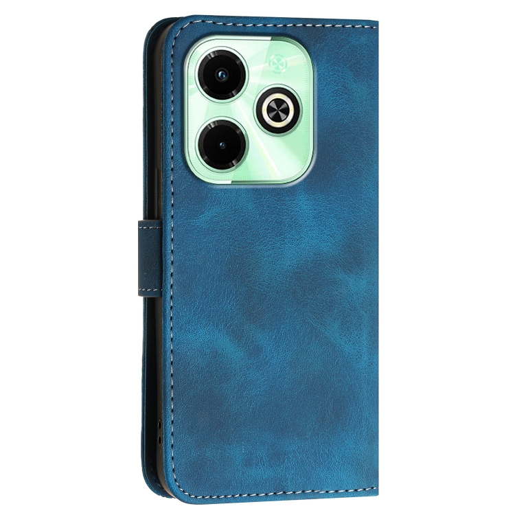 Funda de Cuero con Tapa y Cordón para Infinix Hot 40I 4G Yx0080 con Diseño Relieve Mariposas (Azul Oscuro)