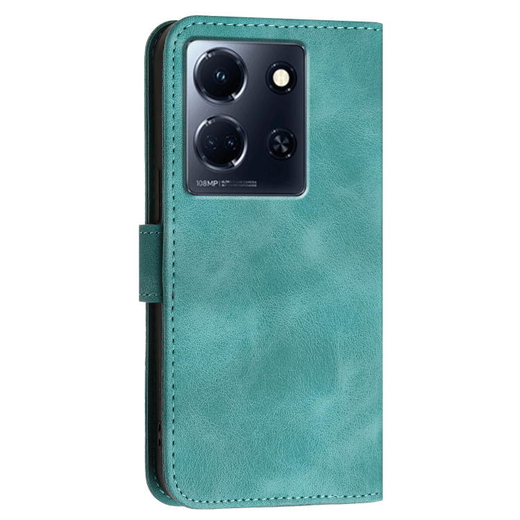 Funda de Cuero con Tapa y Cordón para Infinix Note 30 5G Yx0080 con Diseño Mariposa y Cuadrícula (Azul Claro)