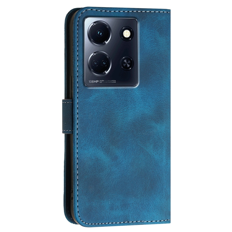 Funda de Cuero con Tapa y Cordón para Infinix Note 30 5G Yx0080 Diseño Mariposas (Azul Oscuro)