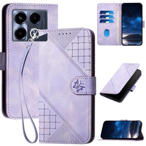 Funda de Cuero con Tapa y Cordón para Infinix Note 40 4G Yx0080 con Diseño Relieve Mariposa (Morado Claro)