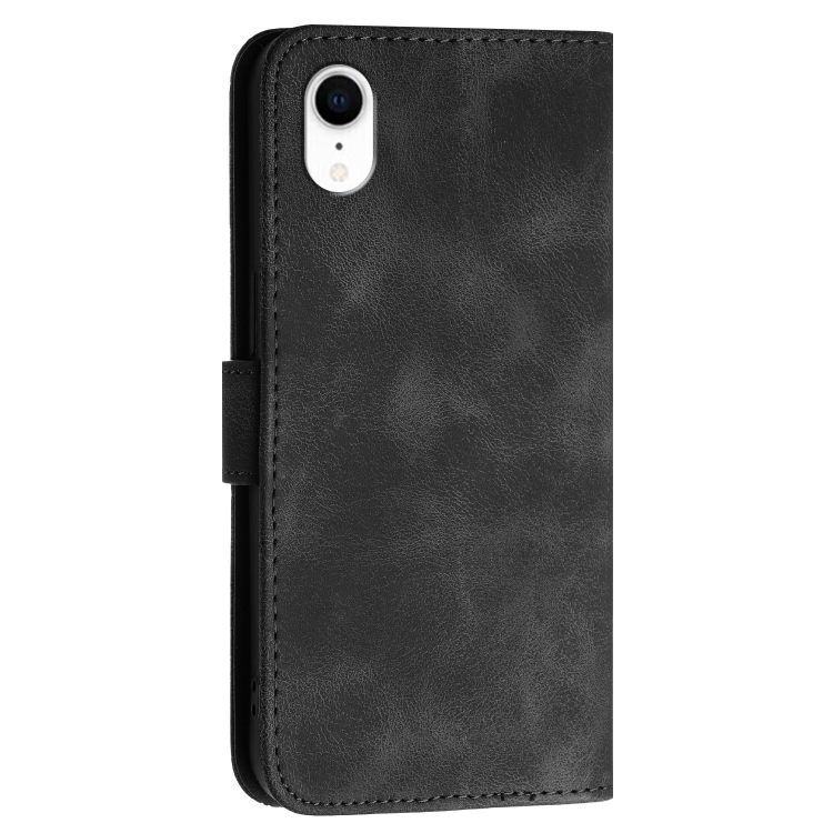 Funda de Cuero con Tapa y Cordón para iPhone Xr Yx0080 con Diseño en Relieve de Mariposa y Cuadrícula (Negro)