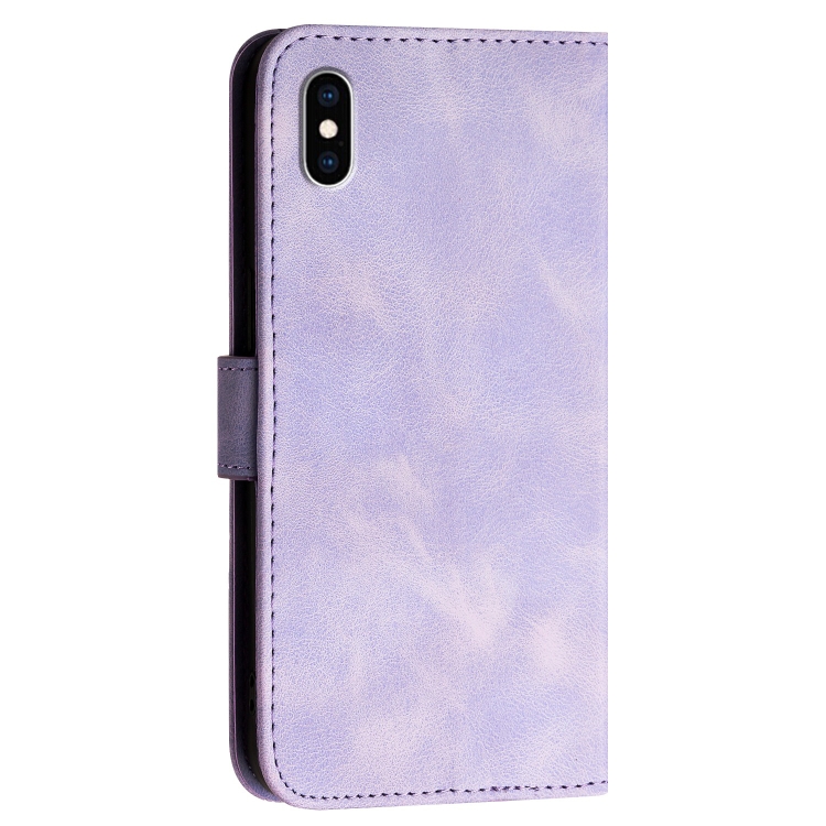 Funda de Cuero con Tapa y Cordón para iPhone Xs Max Yx0080 Diseño Mariposas Cuadrícula (Morado Claro)