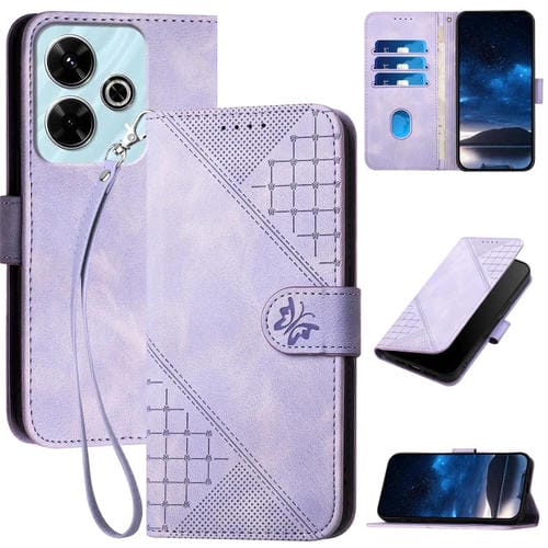Funda de Cuero con Tapa y Cordón para Redmi 13 Yx0080 con Diseño En Relieve de Mariposa y Cuadrícula (Morado Claro)