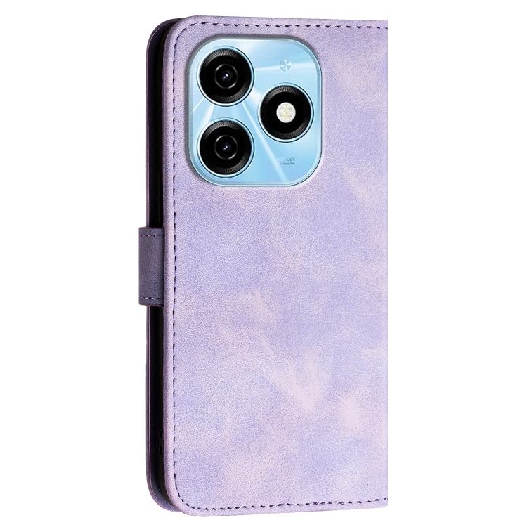 Funda de Cuero con Tapa y Cordón para Tecno Pop 8 4G Yx0080 con Diseño Relieve Mariposas (Morado Claro)