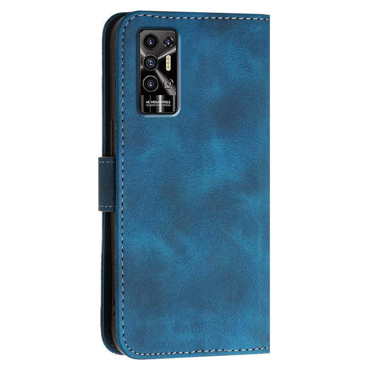 Funda de Cuero con Tapa y Cordón para Tecno Pova 3 Yx0080 Diseño Mariposas (Azul Oscuro)
