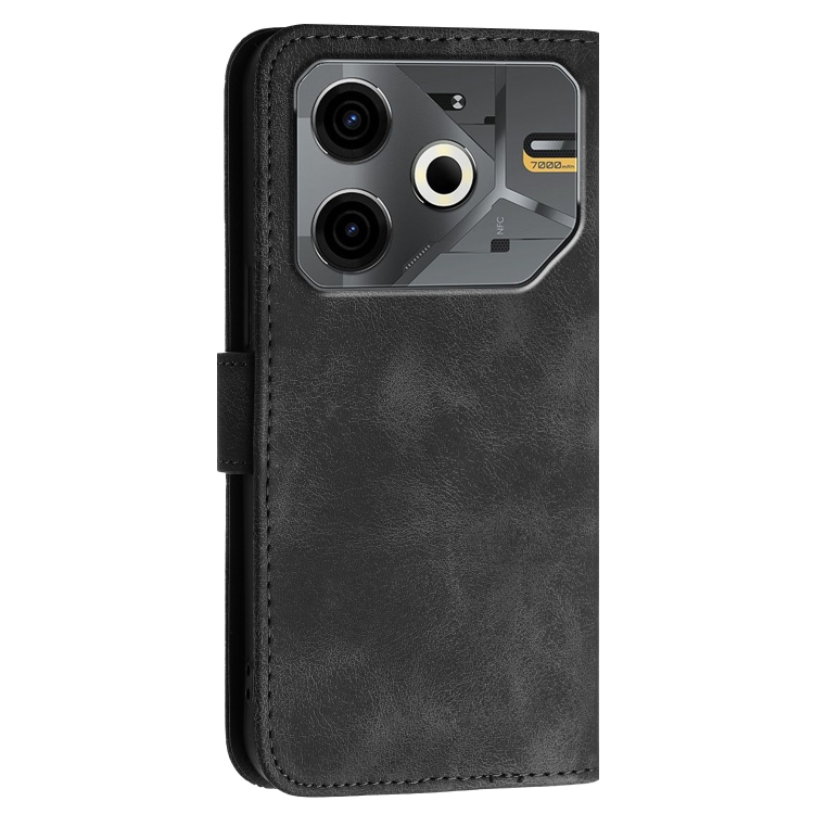 Funda de Cuero con Tapa y Cordón para Tecno Pova 6 Neo Yx0080 con Diseño en Relieve (Negro)