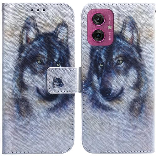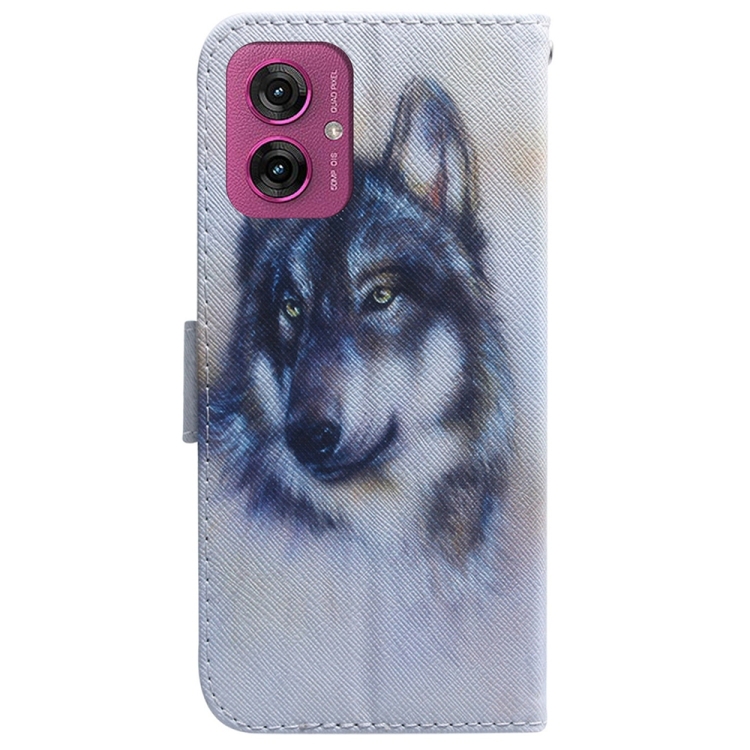 Funda de Cuero con Tapa para Motorola Moto G55 con Dibujo Lobo Blanco